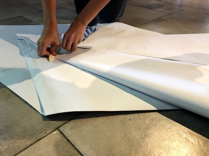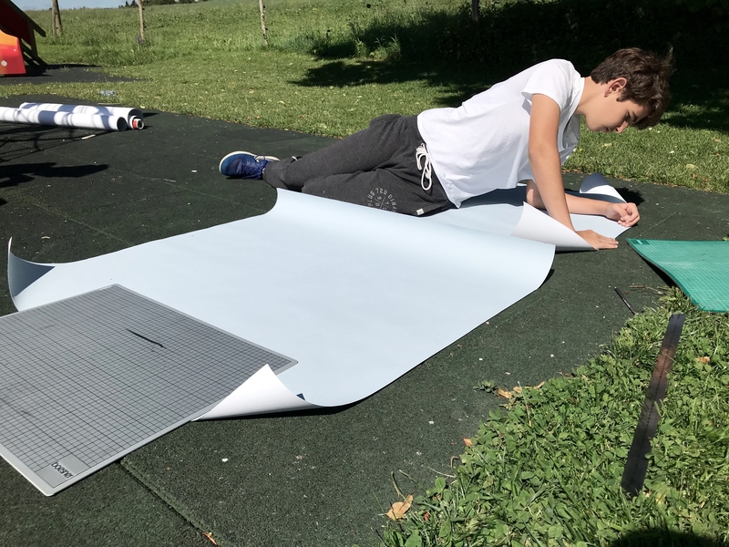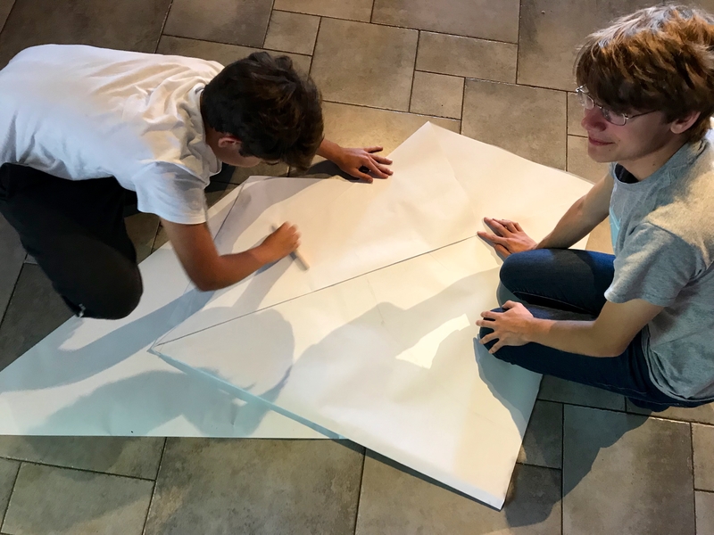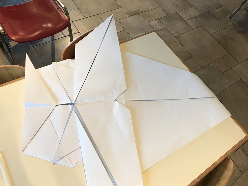 „Falten – Formen – Fallen“. Wir versuchten, möglichst all diese Begriffe in unser Projekt einfliessen zu lassen. Falten – da fiel uns die Falttechnik Origami ein. Formen – eigentlich ein ziemlich offener Begriff, da kann man viel darunter verstehen. Fallen – Was fällt, muss auch fliegen. Unser Ziel war es also, irgend ein Geschöpf der Lüfte zu falten. Nach einer kleinen Brainstorming-Runde einigten wir uns auf einen Origami-Drachen. Wir haben hauptsächlich gute Erfahrungen mit Origami falten, und eine Anleitung war auch schnell gefunden.