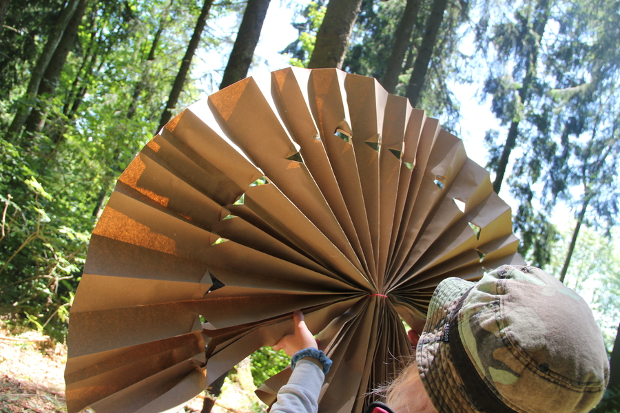 Unser Projekt passt sehr wirkungsvoll in das Land-schaftsbild des Waldes die Kombination aus schwar-zem und braunem Papier wirkt sehr angepasster Traumfänger verleiht die magische Wirkung auf einen Ort fern vom Alltag.